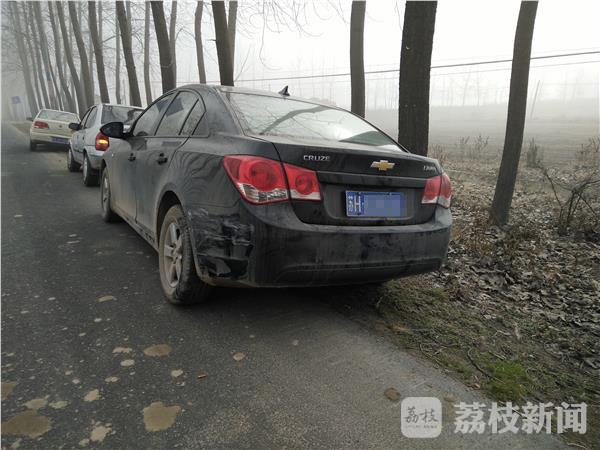 今天19日上午八点左右,淮安涟水县涟南洋路牌坊地段发生一起三车相撞追尾交通事故,记者赶到现场时交警已经赶到事故现场,对现场进行事故勘察,记者在现场看到能见度不足200米,当时雾霾很大,一辆黑色的科鲁兹轿车由西向东行驶,后面一辆白色的p0lo大众轿车由于速度过快超车时遇到对面一辆由东向西行驶的面包车也在超车,导致当时无法避让撞到了前面的科鲁兹的尾部,导致三车相撞,在现场可以看到零部件散落一地,科鲁兹车左尾部被察伤,白色的大众轿车前保险杠严重变形脱离,左右灯都被撞脱落,零部件散落一地,对面的面包车左大灯以及保险杠都有不同程度的受损,好在人员都没有受伤。主要原因就是雾霾天气能见度看不到对面的行车。救援车辆已经赶往现场对事故车辆进行施救,警方对路段疏散通畅。有关事宜正在调查处理之中。雾霾天气驾驶车辆时,需减速慢行。预防事故发生。