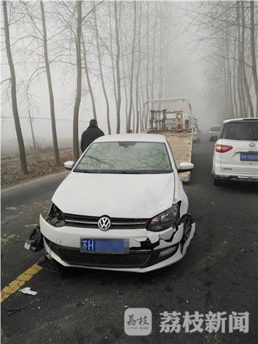 交警大队事故科韩文佳:通过这次事故我们可以看出造成事故的主要原因是由于下大雾而造成看不清前方道路和车辆,而且同时超车所引起。在此提醒广大司机,下雾天要和前车保持足够的安全距离,同时超车的时候要注意来往的车辆,尽量不要超车。事故主要是白色的大众轿车在超车的时候撞了黑色的科鲁兹轿车,同时对面有一辆面包车也在进行超车两个在中间发生了事故。
