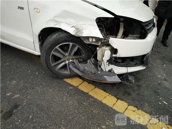 科鲁兹轿车车上的家属表示:当时我们车正常行驶,我们前面一辆车急刹车,我们也就刹车了。后面车就撞了上来,我们车向东回去的,大众宝来轿车撞我们车尾部的。