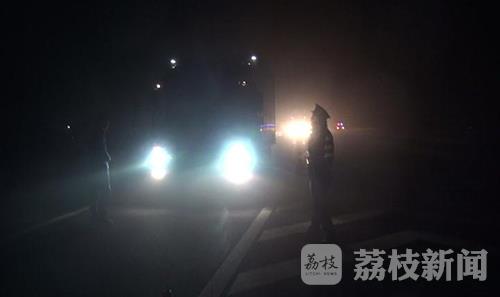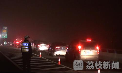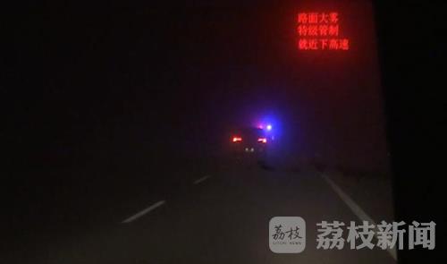 晚上六点钟左右,记者随沈海高速盐城高速交警二大队民警赶到盐城东出口时,高速公路的路政人员在高速交警的护卫下,正在摆放锥形反光警示桶,引导由南向北往连云港方向的车辆下高速,在盐城东出口的匝道口,一块实行特级管制的告示牌摆放在那里,禁止除执行公务车辆以外的车辆驶入高速公路,匝道口上方的显示屏也打出了“前方大雾,道路封闭、敬请谅解”的字样。高速公路上分流警示桶摆放完成后,高速交警随即对由南向北的车辆进行分流,强制所有车辆从盐城东出口下高速,对那些不愿意下高速的大型货车,高速交警逐一进行劝说,要求他们必须下高速,在收费站口,四个收费通道全部打开,匝道口里挤满了等待通行的车辆。高速二大队民警杨磊警官告诉记者,因为连云港段已经开始遭受浓雾霾的袭击,根据省交警总队指挥中心的指令,从盐城东向北往连云港方向实行特级管制,并在盐城东设置分流点,强制该方向行驶的车辆在盐城东下高速。晚上9点多钟左右,沈海高速盐城东向北路段被浓雾霾笼罩,路面的能见度不足百米,部分严重路段能见度不足二十米,盐城东分流点已不具备分流条件,高速交警部门随即在大丰设置分流点,对向北方向的车辆进行分流。