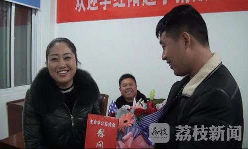 在问及为何会同意李红阳去捐献造血干细胞时,他的爱人许雅丽告诉记者,一开始她出于对身体健康的考虑,也不同意李红阳去捐献,但后来考虑到李红阳的这一举动,可以挽救一个人的生命,也就同意了,并且全程陪同。在中队举行的欢迎会上,来自响水县生命伞公益协会的林巧霞会长不但给李红阳送上了鲜花,还代表他们公益协会给李红阳送上了五千元的慰问金,林巧霞会长在接受记者采访时表示,从现在开始,只要是响水籍爱心人士捐献造血干细胞成功者,他们生命伞公益协会都将送上一份慰问金。