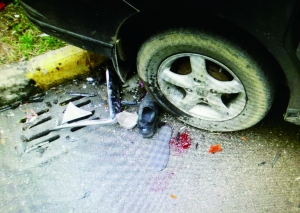 | 目击者拍的被撞车辆,可以看见明显血迹 |