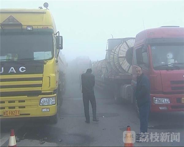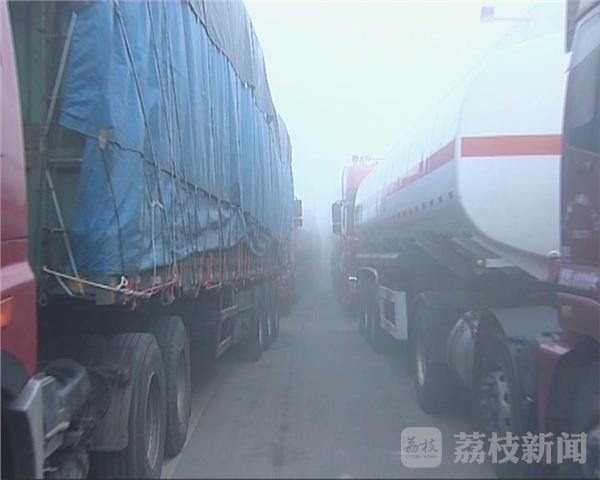 从昨天(12月22日)夜里开始,淮安市淮阴迎来大范围的浓雾天气,气象部门在今天早上发布了大雾橙色预警。早晨七点,记者在淮安西出口看到,交警部门已经对高速公路实行特级管制, 3个出口都已全部封闭,百辆货车轿车在高速出口前排起长龙,等待浓雾散去。