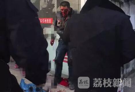 今天上午八点左右在盐城滨海阜东南路二农机对面一名浑身是血的男子蹲在金城浴室门口,手里提着一个蓝色的袋子神情恍惚,好多路人围着他问怎么回事,该男子也一直沉默不回答。随后有人报警,赶来的警察和救护车将受伤男子带走送往医院救治。