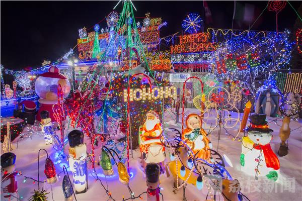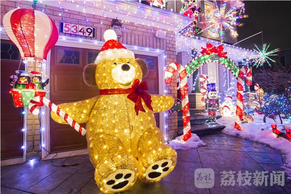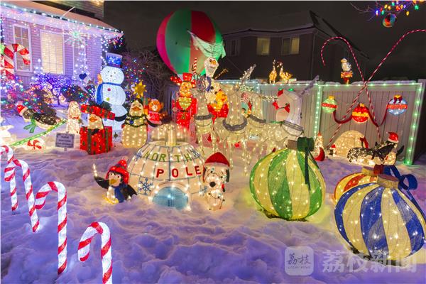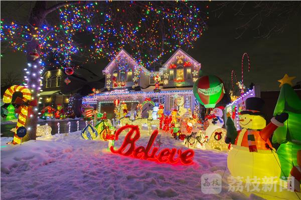 圣诞节临近,加拿大多伦多地区的许多居民纷纷点亮自家门前新布置的圣诞主题彩灯装饰,张灯结彩迎接圣诞节。