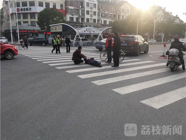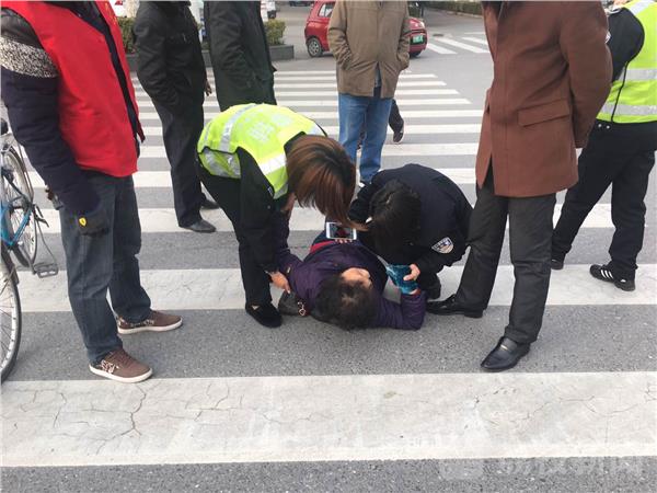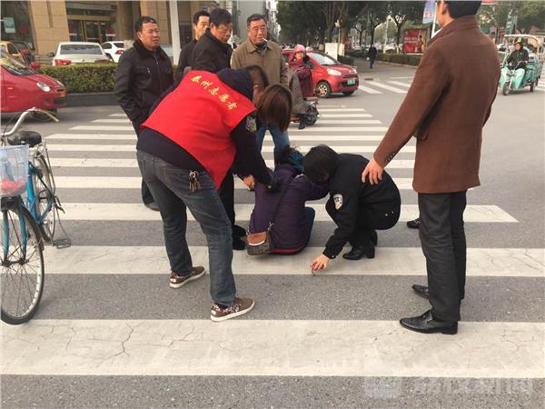 12月23日下午3时50分许,在江苏省泰州市高港区金港路与港城路交叉口,一辆小轿车与自行车刮蹭,骑自行车老人倒地,轿车车主立即下车。这时正在路上执勤的交巡警三位女辅警发现路上有情况后,立即赶来对倒地老人询问,在确定无明显外伤后,将老人扶起,其中一辅警联系家人并拨打电话,随后送医观察无大碍。