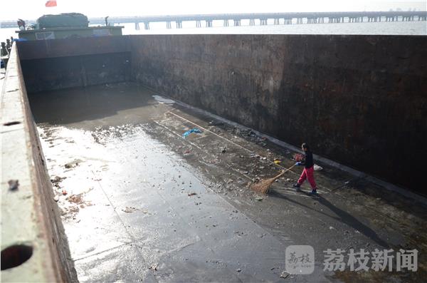 太仓市海事局指挥中心副主任邓子成表示,从18号到现在。组织力量集中打捞,一共16家码头发动了沿江清理。估算现在清理了800方的垃圾。下一步继续保持高压态势,加强巡查。坚决打击这类行为。