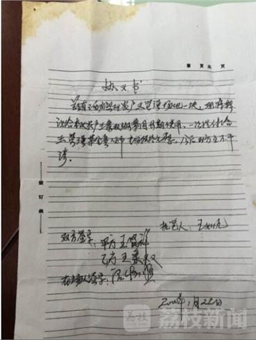 事情的起源,还要从2000年1月22日的一份协议书说起,当事一方王贤祥的妻子曹长英提供给记者的协议书是这样写的,“兹有王西自然村农户王贤强场地一块,现将(这块地)转让给本队农户王象双做(作)菜园长期使用,一次性付给王贤强菜金人民币壹佰伍拾元整,今后双方互不干涉。”