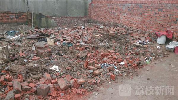 荔枝新闻记者到现场看到,这块地约有60平方左右,地面上零乱地散布着一些砖头。临近道路一侧还砌了1米多高的围墙。