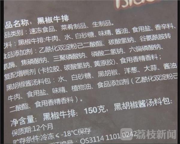 12月22日上午,记者走访淮安市区多家超市发现,不少包装牛排中都添加了卡拉胶。在开发区大润发超市冷冻区的冰柜中,摆满了多个品牌的冷冻牛排,在牛排外包装的配料表中,记者发现有几款牛排的配料中含有卡拉胶。