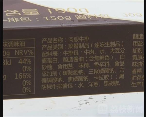 当记者问到,配料表中的卡拉胶在牛排中起到什么作用时,该销售人员表示,主要是凝合牛排的作用。