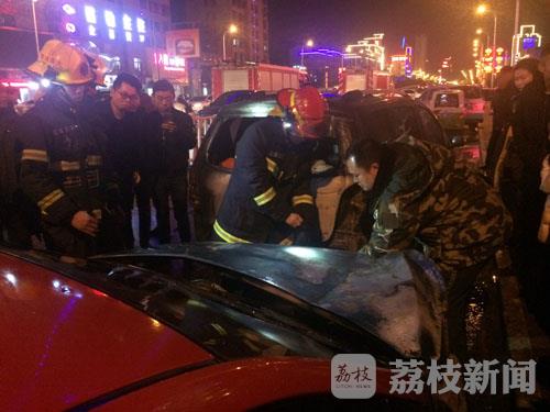 荔枝网友在现场看到,数百名市民在现场围观,大火已经被扑灭,消防官兵正对红色悦达起亚牌小汽车引擎盖进行撬开,准备对汽车着火点进行检查。具体起火原因有待消防部门进一步调查。