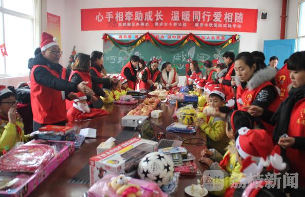 12月24日是西方一年一度的圣诞平安夜,为了让淮安市高铁新区中欣双语学校18名留守小学生感受到社会的温暖,淮安市小善公益30多名志愿者为18名留守儿童送上了一份特殊的圣诞礼物。