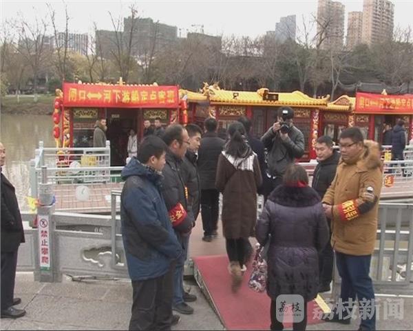 12月24日下午2点,淮安市里运河首条“水上巴士”正式开通,百名市民登上龙船参加了“水上巴士”首次体验活动,船内优良的硬件设施和里运河沿线的美丽风光引来市民的啧啧赞叹。