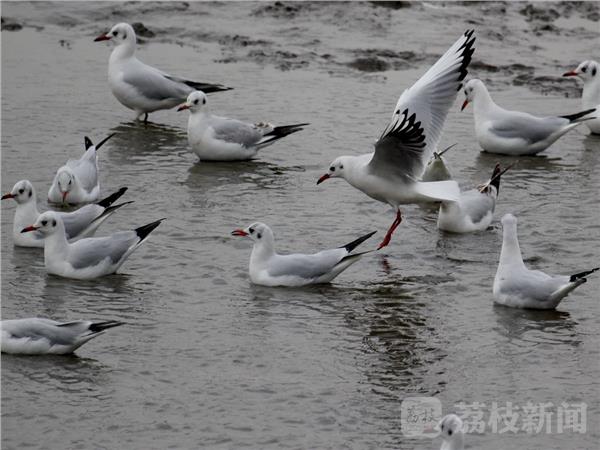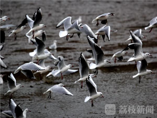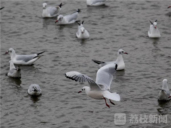 村民杨先生说,因为本地区生态环境日益提升,每年冬天,成群红嘴鸥都会飞来六合过冬,这里小鱼小虾多,有吃有喝,大约明年2月前再南迁。