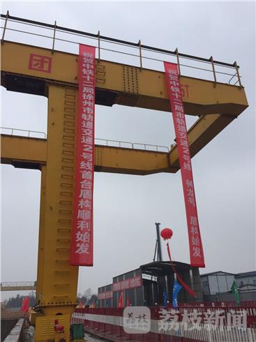 徐州轨道2号线一期工程09标项目经理吴红强说, 为了确保盾构机下井完成12月26日开工 ,盾构拼装都是超常规,时间节点要比过去稍微少一点, 以前需要一个月现在就是20多天完成。中国铁建徐州轨道2号线一期工程总承包部 副经理 毋海军说,2号线总共是19个区间, 其中有16个是用盾构法, 还有3个是用矿山法, 所以盾构在区间施工过程中占有很大的比例,盾构始发之后,春节期间都不停工,在明年5月1号左右到达市政府站。