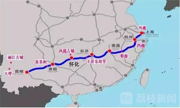 上海至昆明高速铁路是国家中长期铁路网规划“四纵四横”客运专线的重要组成部分,途经上海、浙江、江西、湖南、贵州、云南六省市,全长2252公里。其中上海至杭州段于2010年10月26日开通,杭州至长沙段于2014年12月10日开通,长沙至贵阳段于2015年6月18日开通。