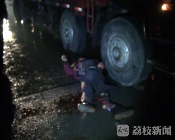 26日晚8点多,G204国道盐城市大丰区白驹镇的一个十字路口,一辆由北向南的大货车撞倒一位过马路的老人,老人当场被撞飞有十几米远,附近的群众听到响声后就奔了出来,一看大货车撞到老人立即报警,110、120接到报警迅速赶往现场勘查和抢救伤者。