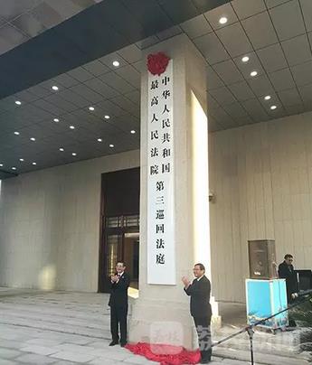 今天上午八点半,最高人民法院院长周强和江苏省委书记李强共同为第三巡回法庭揭牌。 第三巡回法庭大门,位于南京市浦口区浦东北路5号明发总部广场内。