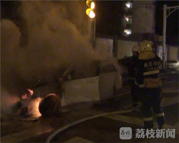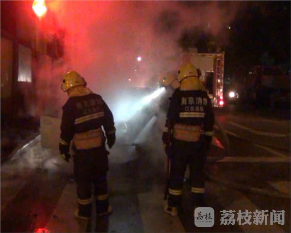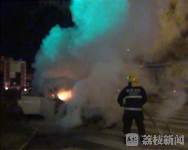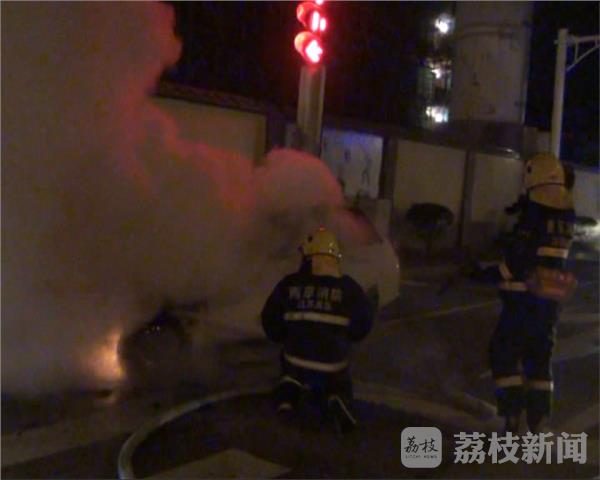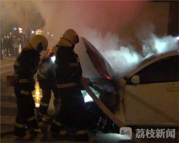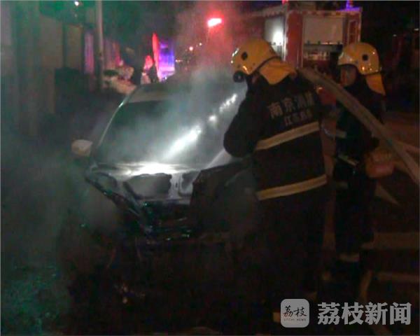 昨天(12月28日)晚上6点多,在南京江宁区殷巷集镇殷华街路口,一辆行驶中的轿车突然自燃,接到报警后消防立即赶到现场扑救。