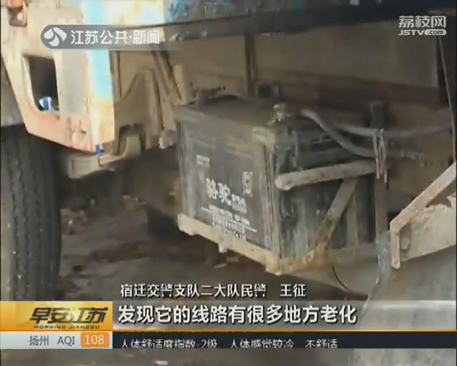 民警对车辆进行了仔细检查后,发现了一些线索。宿迁市公安局交警支队二大队民警王征介绍到,现场有一股糊焦味,发现在车辆电瓶位置有很明显的烧焦痕迹。车辆内线路有很多地方老化,有的裸露在外面。