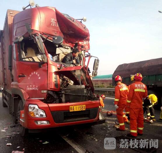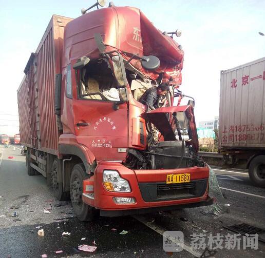 12月30日上午9点左右,G228国道盐城市大丰区境内1065公里附近发生一起一辆大货车停在路边修车后面一辆货车没有仔细观察发生追尾导至追尾货车驾驶员被卡驾驶室不能动弹。