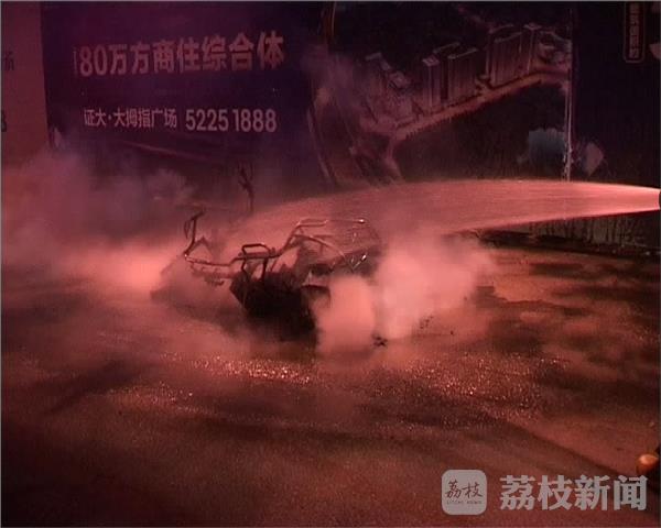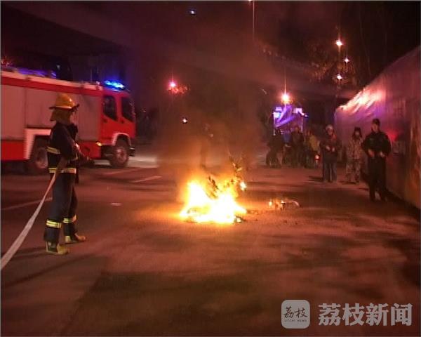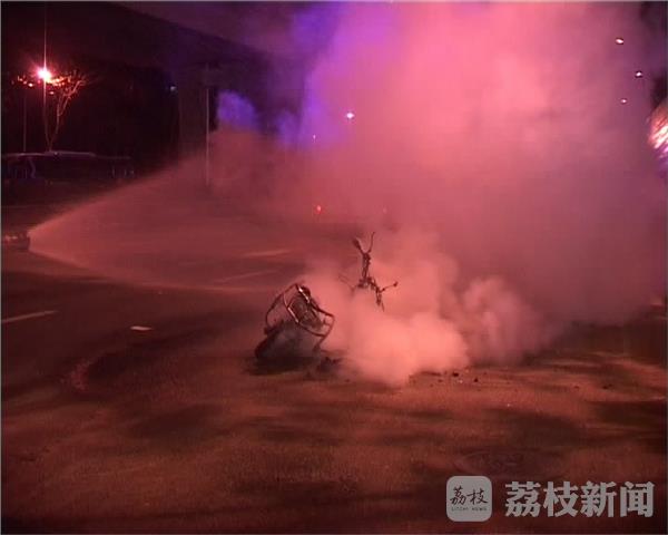 12月28号晚上7点多钟,有市民报警称,在南京鼓楼区郑和中路由南向北方向慢车道上,一辆电动车起火,当地消防赶到现场灭火。