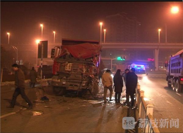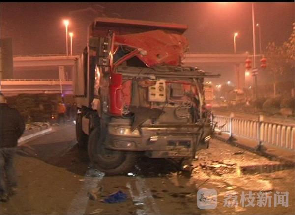 今天(12月31日)凌晨两点半左右,在南京市江宁区岔路口宏运大道附近,两辆渣土车相撞,其中一辆渣土车几乎被撞毁,一名司机受伤严重,所幸救援及时,暂无生命危险。