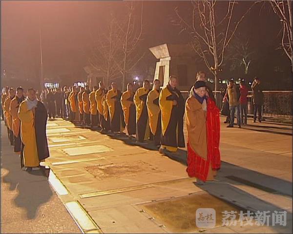 23时45分,金山寺心澄法师主持祈颂法会并启钟。零点整,满含着吉祥、喜庆、祈福的新年钟声准时敲响。随后,市民们依次排队登台上前撞钟,在浑厚悠扬的钟声中,人们默默祈祷祝福、寄托心愿,送上最诚挚的祝愿。