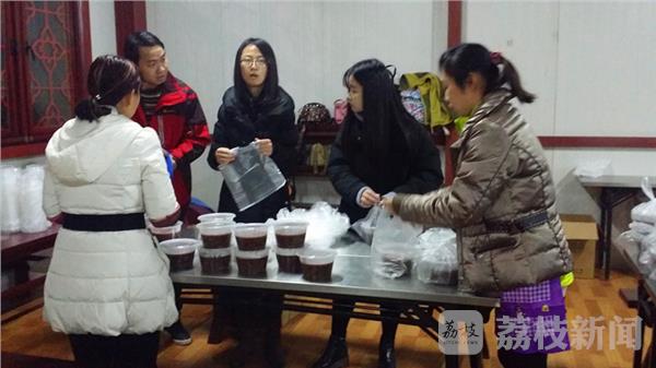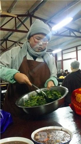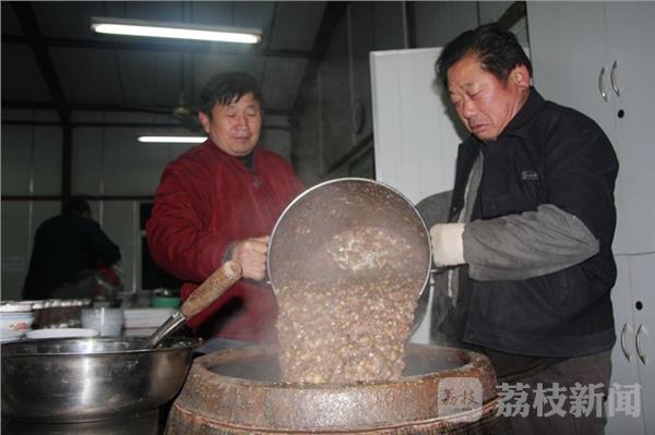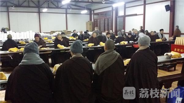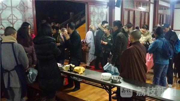 荔枝新闻网友今晨6点前往赶到这里用镜头记录了居士和食客品尝腊八粥时的情景,以及寺庙义工们的劳作的艰辛。