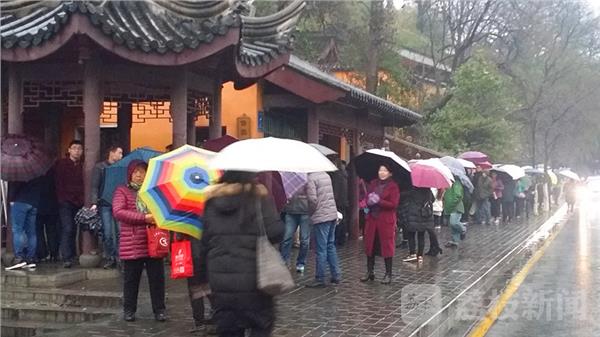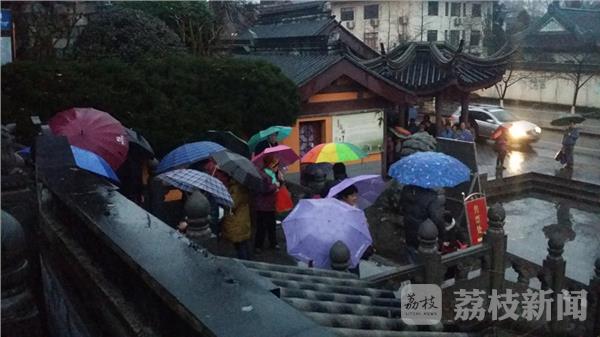今是传统的腊八节,南京众多市民一大早便冒着浠浠沥沥的小雨,前往位于市中心的鸡鸣寺品尝腊八粥。