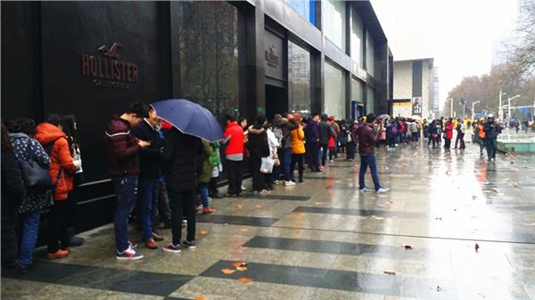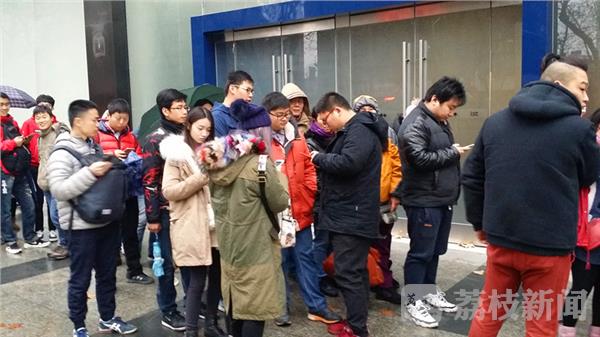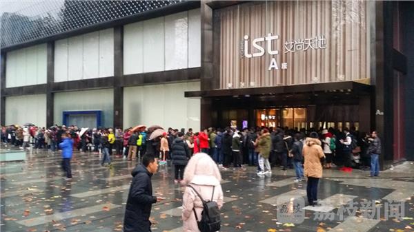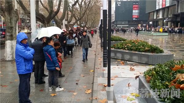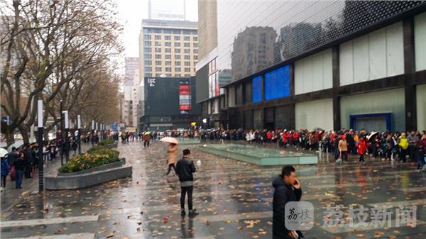 疯狂的“果粉”! 今天清晨,荔枝新闻网友途经南京新街口,看到中山路苹果手机卖场店门口出现了罕见的“长蛇阵”,排队的人流延着门前广场竟绕了个百米大圈。经了解,得知这些冒雨排长队等候的都是苹果手机的粉丝,排队的人数竟有一千多人。