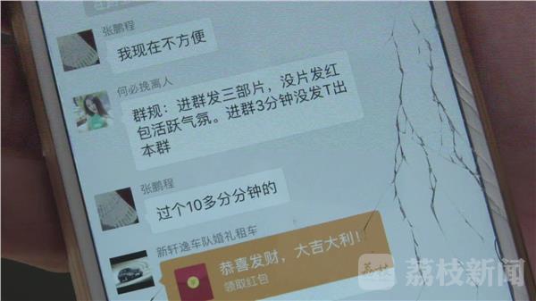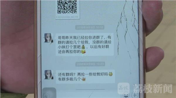 扬州市高邮车逻的张先生平常就爱刷微信、抢红包。去年10月8号,他偶然在一个微信群里看到了陌生网友“喝茶时间”发的名片,上面说:“看片加好友”。出于好奇,张先生加了“喝茶时间”为微信好友,谁知刚加了好友,对方就把他拖进了一个名为“秦淮河情怀”的微信群里,而这个群有特别的群规,群成员必须发视频或者红包跟其他人分享。张先生:“群规要我们发三部片子或者五元十个包,在群里面还能抢抢红包 ,还有片子可以看 。然后,我就发了个红包。”
