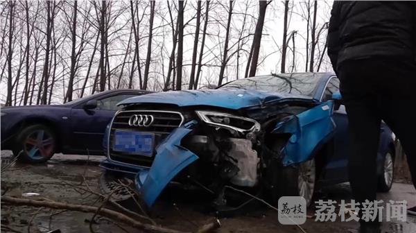 1月7日下午2点左右,在淮安市枚乘路附近岔路,一辆新买的奥迪A3轿车因避让积水水坑,方向盘打猛造成车辆失控撞上路边树木,事故导致奥迪左前车轮爆胎,前车头严重破损无法行驶,幸运的是事故中没有人员受伤。