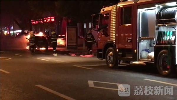 据手机拍摄画面显示,整个汽车陷入红红的火光之中,空气中弥漫着滚滚浓烟,由于事发地地处闹市区,一旦发生爆炸后果不堪设想,事先赶到现场的交警立即将周边的人群全部疏散,随后119也赶到现场用水枪将正在猛烈燃烧的火扑灭,不过汽车已经全部烧毁。