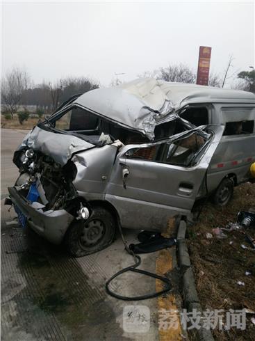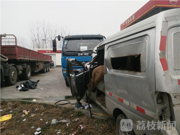 1月8号下午两点多钟,在扬州沿江公路八里段,一辆装载羊的面包车,追尾刚刚出加油站上路的货车,面包车由于惯性居然冲到150米开外的加油站,面包车驾驶员被困车内,被消防队员救出时驾驶员不幸身亡,目前初步认为面包车车速过快造成事故发生,但是具体车祸原因还在调查中。