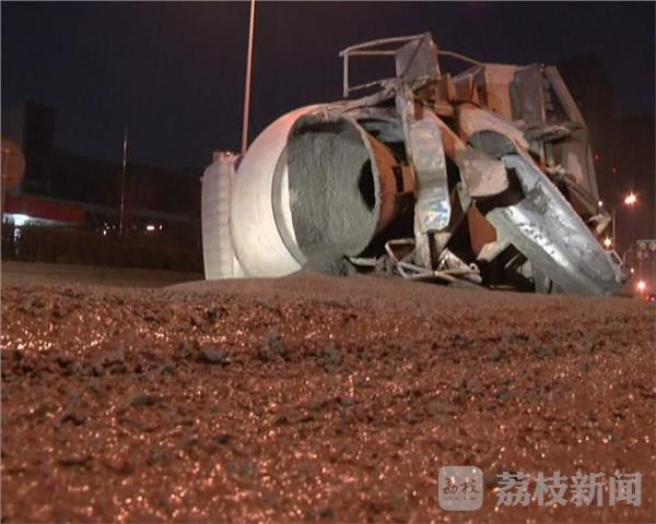 今天(1月9日)早上,在南京江宁区的双龙大道就有一辆混凝土搅拌车后轮突然爆胎,紧急时刻司机一脚急刹,结果整辆车一下侧翻,车上的混凝土也是翻了一地。