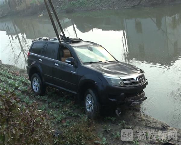 1月9日早上7时左右在盐城市大丰区大白公路路南侧河中有一辆黑色的轿车在水里只露出一点车顶,车是什么时间冲到河里,车里有没有人被困车中什么情况都不知道,一位住在旁边的群众看到车立即报警,110、120接到报警后迅速赶到现场进行救援。