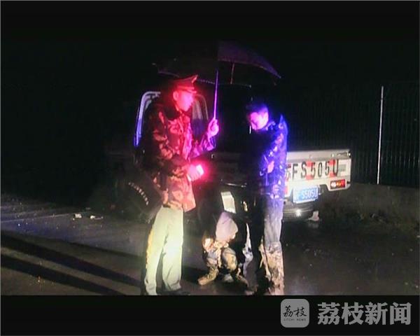 在江苏龙源风电附近,一辆停靠路边的卡车引起了民警的注意。卡车旁一对年轻男女相互依偎着站在雨中,却没有打伞,任由雨水淋湿。两人从双脚到膝盖的位置,都沾满了淤泥。张辰:“我们靠近后进行询问,他们说自己是来看海的。由于天色比较晚,靠近晚上11点多,这个时间点过来看海也不太可能。我们确定这两个人就是报警电话所说的准备跳海轻生的当事人。”
