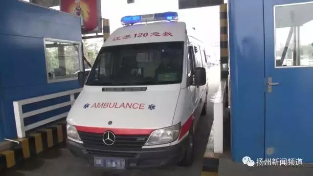 今天中午十一点四十分,记者在瘦西湖收费站看到,一辆120救护车停在道口内,因为没有交费,道口栏杆挡住了救护车的出路。