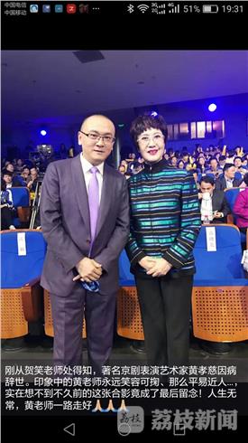 听说黄孝慈老师去世的消息,贺笑在朋友圈里发出了悼念。江苏城市频道主播大林也向黄老师的去世表示哀悼。