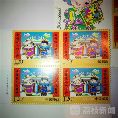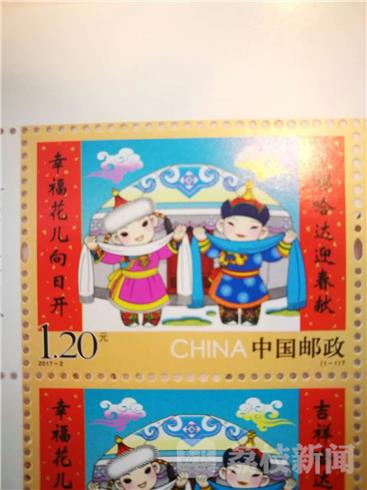 今天,1月10号,中国邮政发行2017年第二套邮票,《拜年》,面值1.2元,据悉,原图早就设计好,考虑到今年内蒙古自治区成立六十周年,所以改成二个手捧哈达的蒙古族少年。市民热情很高,百余人前往南京集邮中心排队购买这一邮票。