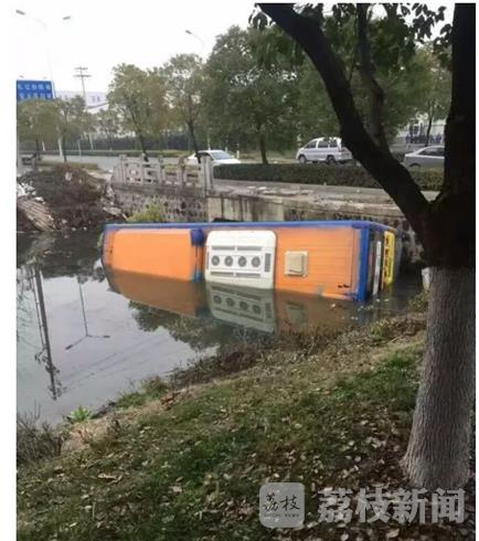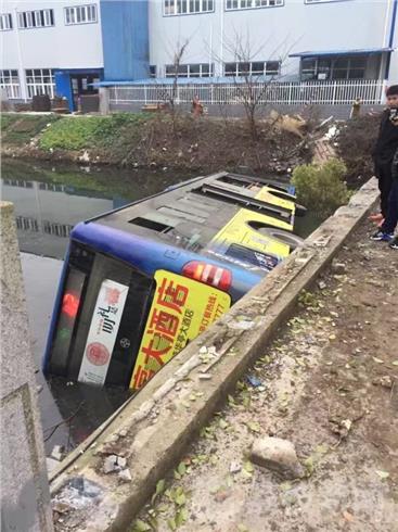 1月10号下午四点多钟,扬州大众港路与秦邮路交叉口,一轿车或闯红灯时,扬州公交12路紧急避让不幸冲入附近河里,所幸车里就驾驶员一人,河水也不是很深,公交驾驶员自行上岸,事故中没有人员受伤。