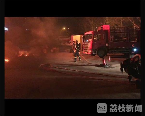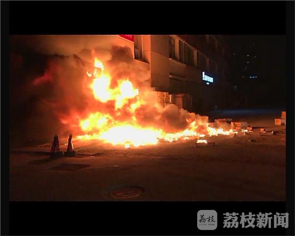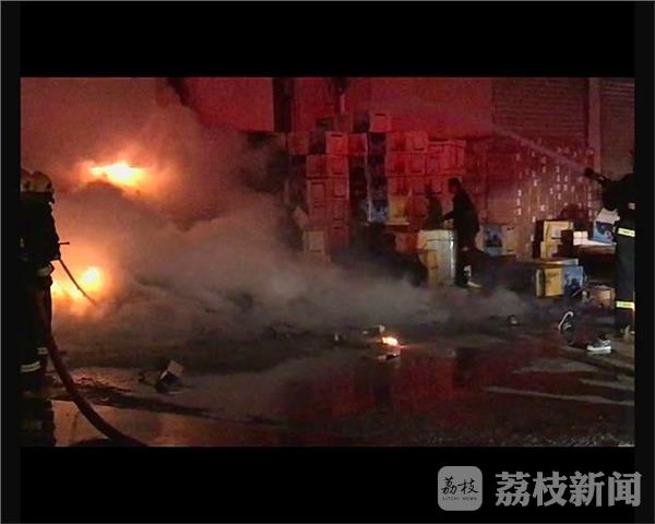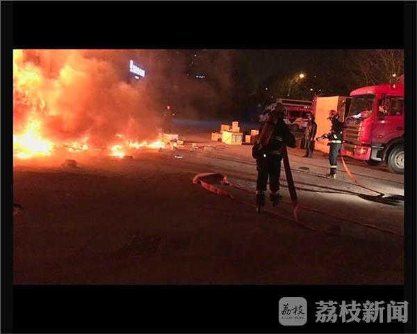 消防官兵到场后,发现是一堆堆放在室外的货物正在燃烧且火势猛烈,中队指挥员立即命令出两支水枪对火势进行打击,经过近10分钟的努力,火势被成功扑灭,在确保无复燃的可能后,中队收整器材归队。
