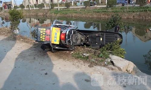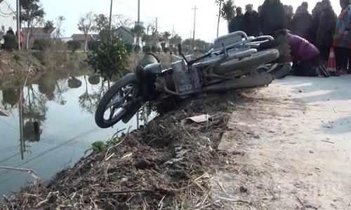 在北侧约两三米远的地方,一辆摩托车逆向侧倒在河边,一棵小树被压在车子下面,小树的树皮被刮破。据了解,死者今年六十二岁,是本村村民。