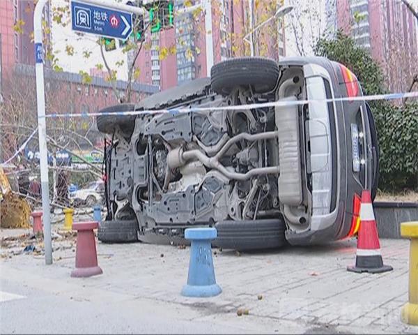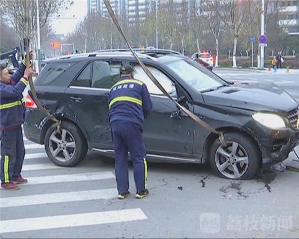 昨天下午4点多,在南京市建邺区黄山路与雨润大街的交叉路口,一辆奔驰越野车为避让一辆电瓶车在路口处反生侧翻,接到报警后,民警立即赶往现场查看。