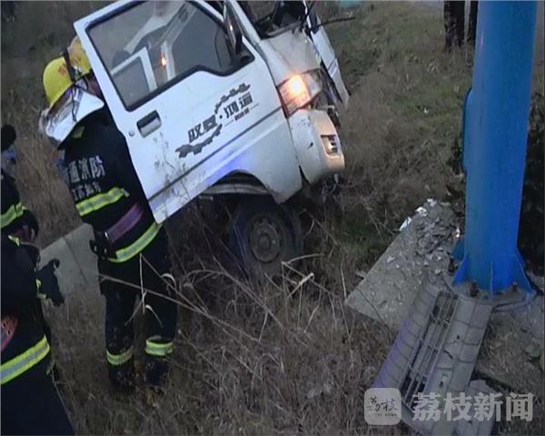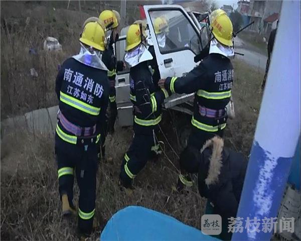 1月12日6时30分左右,位于江苏省南通市如东县328国道113km处发生一起两车追尾的交通事故,其中一人被困在驾驶室内,消防部门接到报警后立即赶赴现场进行救援。