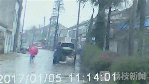 1月5号中午12点多钟,常州市遥观派出所接到报警:一名男子称自家的萨摩耶在中午时分被盗了。民警赶往现场了解到,犬主人梁某养有一只白色萨摩耶,甚是喜欢,每天都要亲自遛狗两次。当天,那狗在自家厂门口玩耍时,就不见了。梁某爱狗心切,随即报了案。这时,一名给梁某厂里送货的驾驶员向警方提供了一条重要线索。遥观派出所民警余雷:“正好货车的车主到那个厂里去送货,他之前也来过那个厂里,知道那个狗是厂里的,正好在厂门口发现这个情况,有人正在牵狗往后备箱里放,他就跟在那车后面,把整个过程都录了下来。”