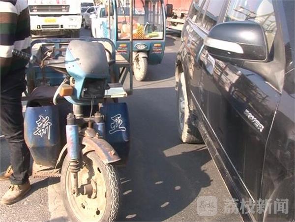 元月14日上午10点左右,在江宁区禄口街道天禄大道臣功社区附近,市民彭师傅骑电动三轮车与一辆越野车在行驶中发生小碰擦。