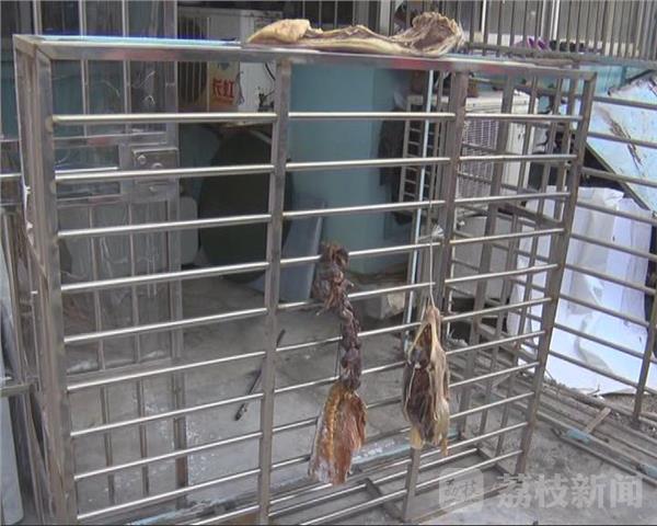 据了解,这个防盗网已经安装有10年左右,用于固定的铁皮已经生锈,承受不了太多重量,在此提醒大家,年关将至,晾晒年货切勿站在防盗网上以防不测。